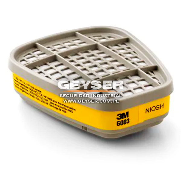 Brinda protección respiratoria contra ciertos vapores orgánicos o gases ácidos. Aprobado por NIOSH contra no mas de 500 p.p.m de vapores orgánicos, 5p.p.m. de cloro, 25 p.p.m. de cloruro de hidrogeno y 25 p.p.m. de dióxido de azufre. Se usa con los respiradores de media rostro y rostro completo de 3M y cuentan con soporte de filtro bayoneta.